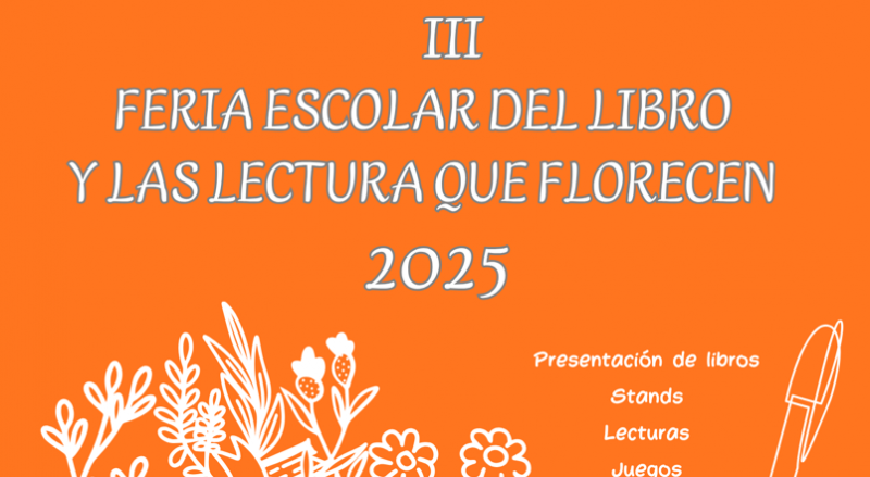 Este martes 21 de octubre, entre las 10:00 y las 14:00 horas, se realizará la III Feria Escolar del Libro y las lecturas que florecen, un espacio dedicado a la lectura, la cultura y el encuentro comunitario. La actividad contará con la participación de editoriales locales, escritores invitados, presentaciones de libros, talleres y venta de ejemplares para todas las edades.