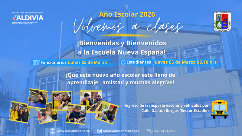 ¡ Bienvenido Año Escolar 2026! La comunidad educativa de la Escuela Nueva España se prepara con entusiasmo para dar inicio a un nuevo año lleno
